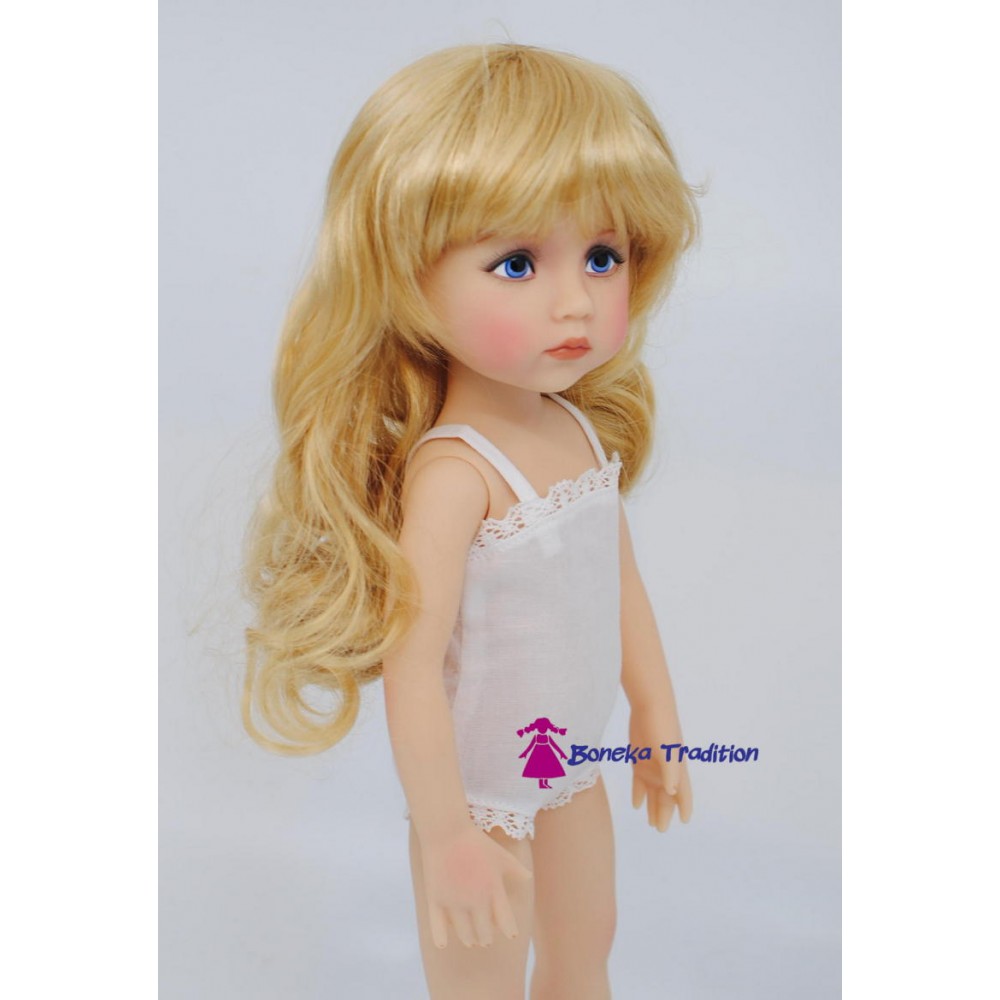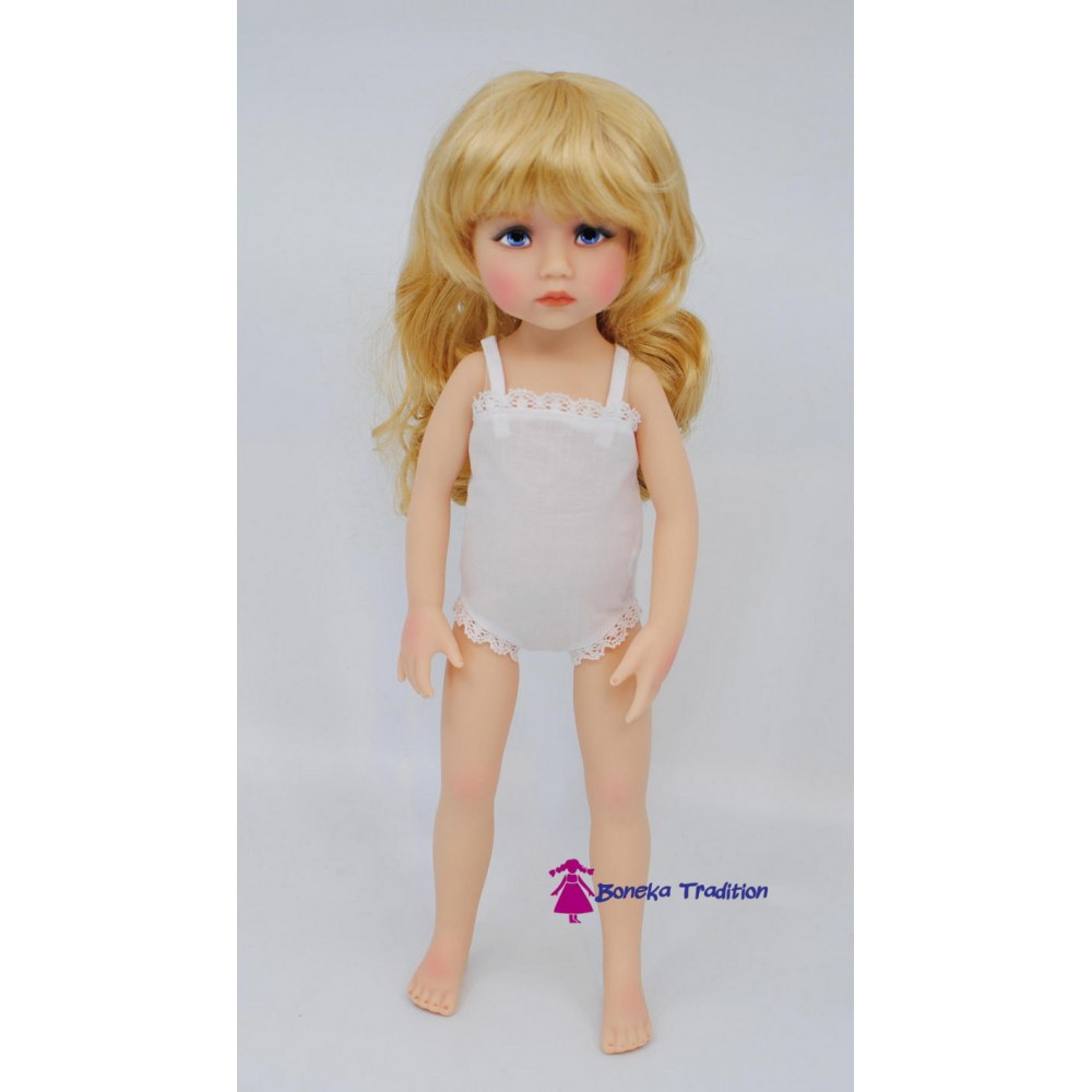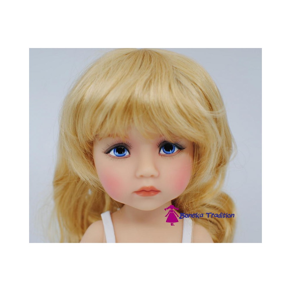 Für diese Puppe haben wir uns für strahlend blaue Augen entschieden. Die dezent gerougten Körperstellen und natürliche Körperhaltung verleihen der Puppe ihren ganz persönlichen Zauber.