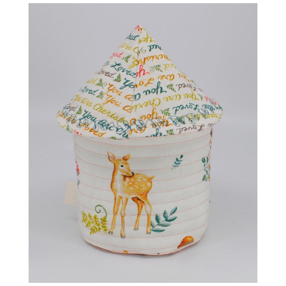 The round house box- made from cotton - has a coneshaped lid which makes the box so special and all your things are save from dust and light